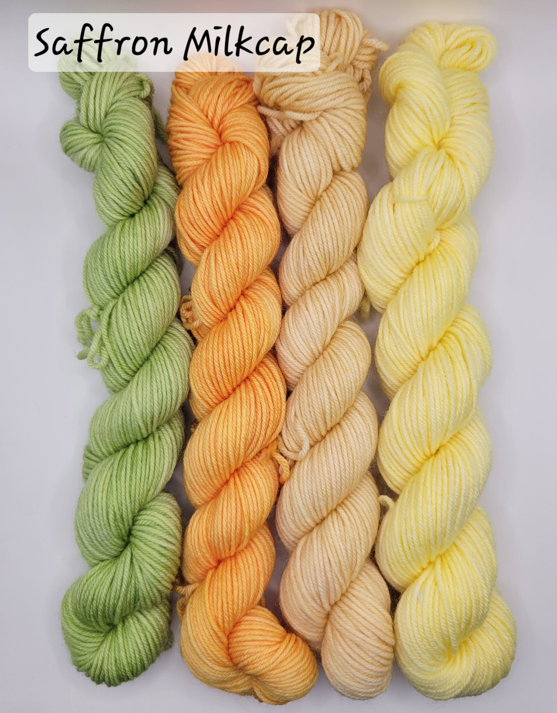 - Saffron Milkcap (Avocado green, Soft Orange, Golden Straw and Hollandaise yellow)