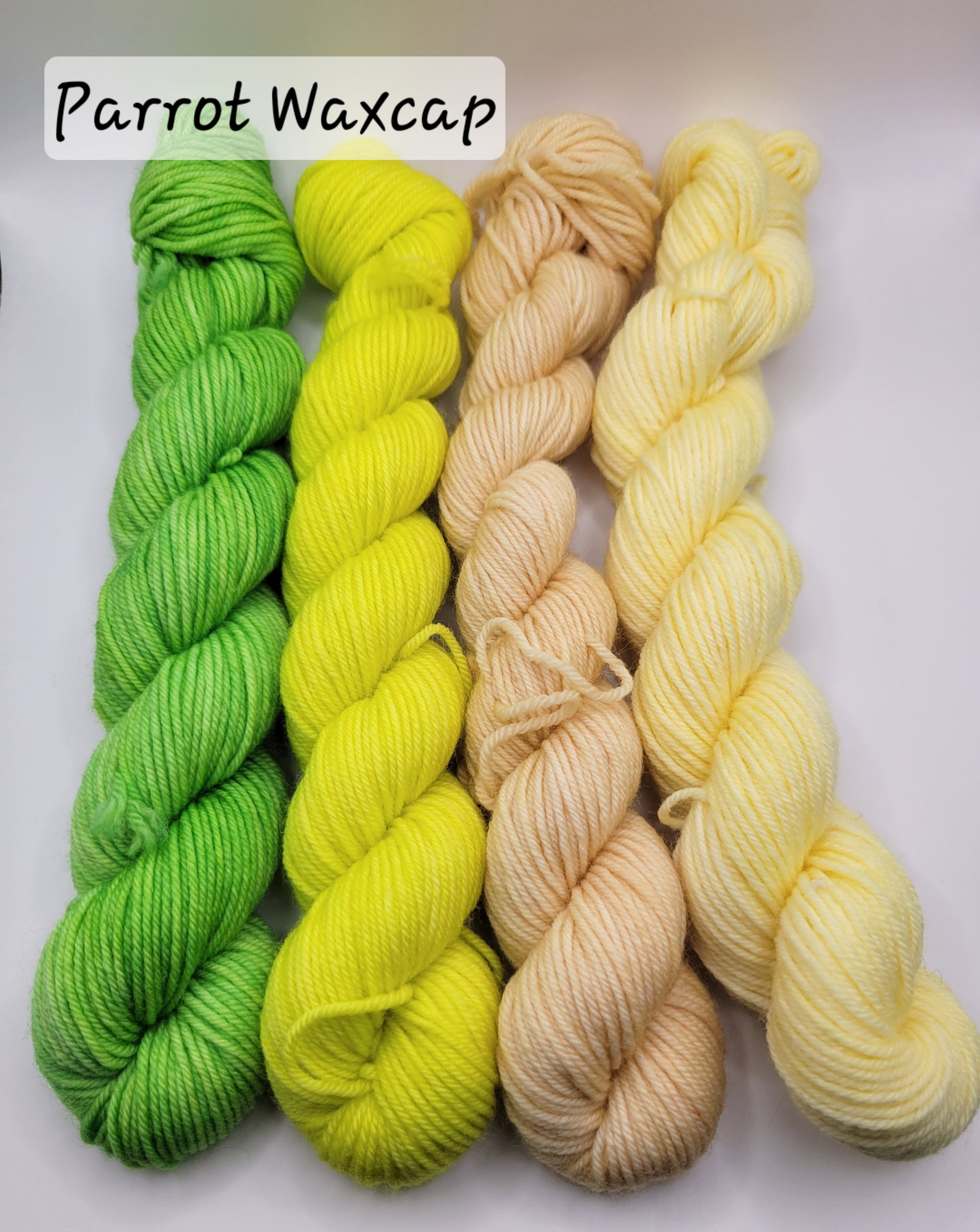 - Parrot Waxcap (Lime squeeze green, Lemon-lime green, Golden Straw and Hollandaise yellow)