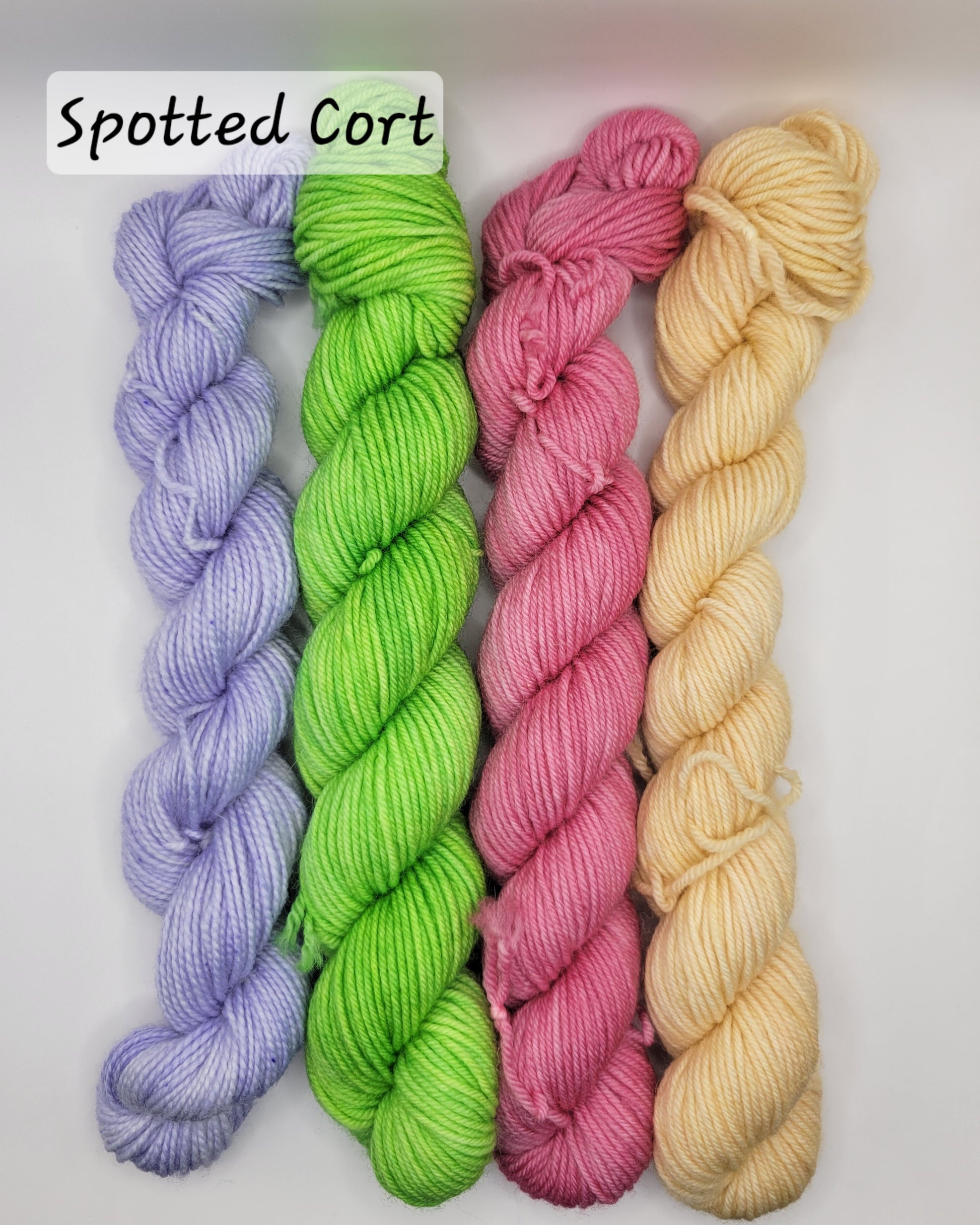 - Spotted Cort (Lilac, Lime squeeze green, Watermelon pink and Golden Straw)