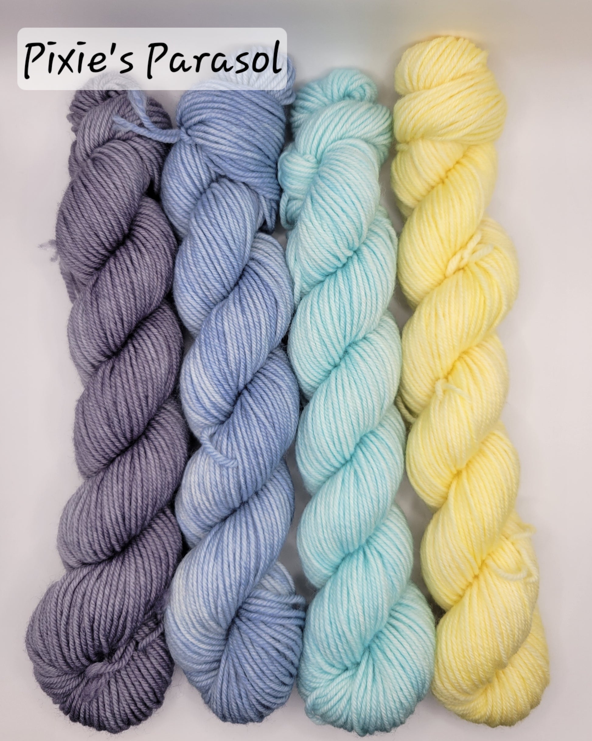 - Pixie's Parasol (Ice gray, Storm blue, Baby blue and Hollandaise yellow)